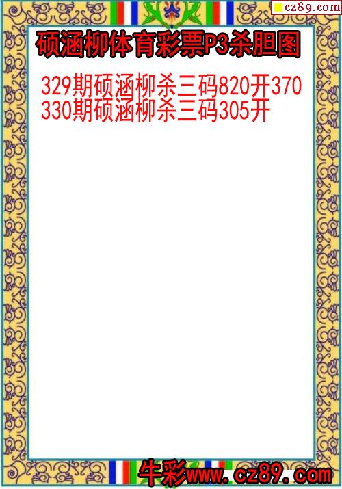 > 25年330期硕涵柳体育彩票P3杀胆图
