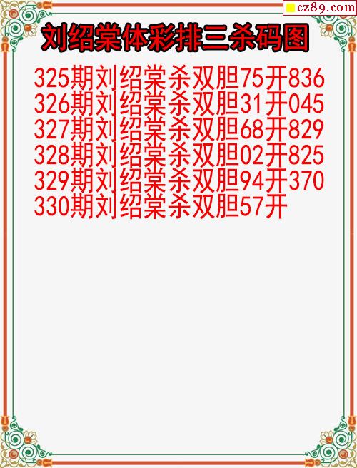 > 25年330期刘绍棠体彩排三杀码图